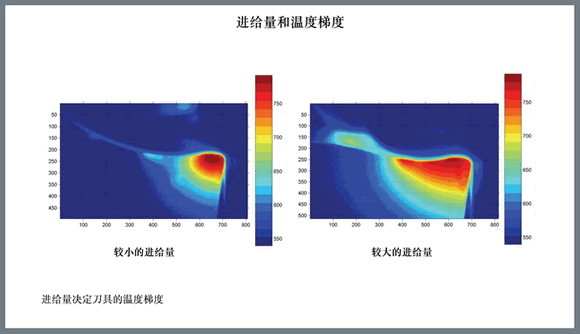 工件材料的不同導(dǎo)熱性以及其他加工因素,都會對熱量的分布產(chǎn)生顯著影響。例如,高溫合金的導(dǎo)熱性較差。當(dāng)加工導(dǎo)熱性較差的工件時,傳入刀具的熱量會增加。此外,加工硬度較高的材料會比加工硬度較低的材料產(chǎn)生更多熱量。在通常情況下,更高的切削速度會增加熱量的產(chǎn)生,而更高的進(jìn)給量會加大切削刃中受高溫影響的區(qū)域。